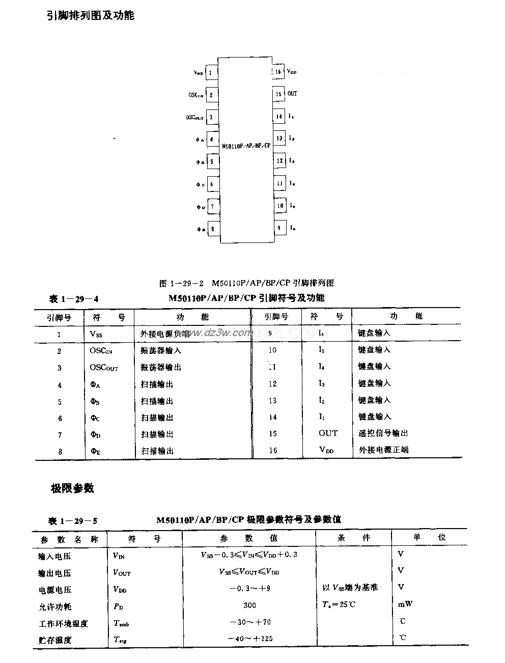 M50110P/Ap/BP/CP 引腳排列圖及功能